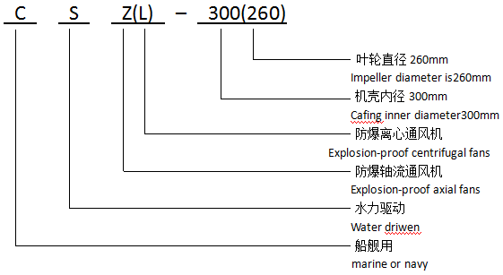 CSZ型水力驱动防爆轴流风机由水轮机、机架、机壳、转动体和叶轮等组成。水轮机用耐腐蚀铜合金精密铸成。机壳用奥氏体不锈钢焊成,叶轮用高强度铝合金铸成。水轮机和转动体的密封采用机械密封和填料两层密封。机壳与叶轮间有黄铜制成的安全环整体为无火花结构。CSZ型风机有抽风和送风式结构,两者不能通用。