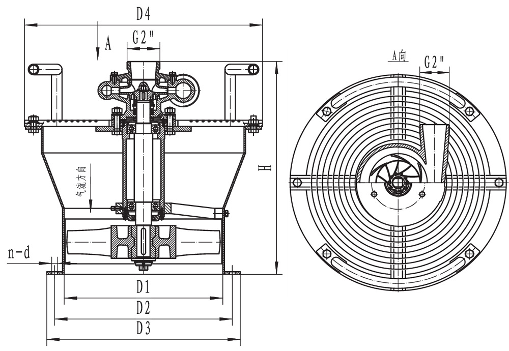 结构为无火花结构。出风口角度抽风式为R90度,送风式为R225度,两者不能通用。